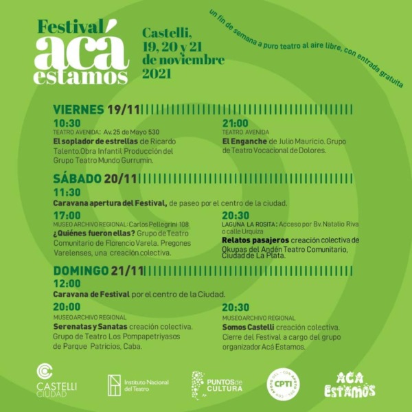 20:30hs. Museo Archivo Regional – “Somos Castelli” creación colectiva. Cierre del festival a cargo del grupo organizador “Acá estamos, teatro Comunitario”.