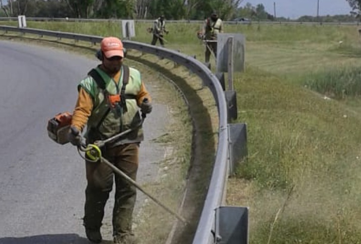 Trabajos de corte de pasto y limpieza en el distribuidor de calle Lamadrid