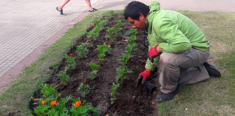 Siguiendo con las tareas de mantenimiento en Plaza Castelli se realiza recambio de plantines en canteros centrales. Se colocaron 250 plantines de copete enano en reemplazo de pensamientos, los cuales se realizan en el Vivero Municipal.