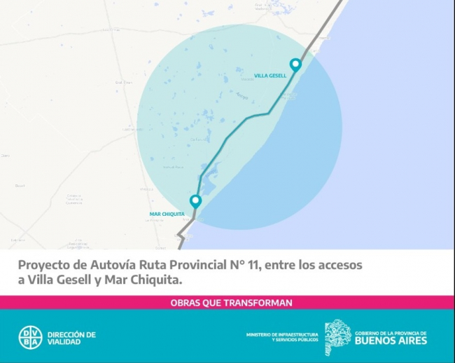 La Provincia de Buenos Aires retomó el proyecto que convertirá en Autovía un nuevo tramo de la Ruta N° 11, entre los partidos de Villa Gesell y Mar Chiquita, considerada una arteria fundamental para el desarrollo turístico de la zona.