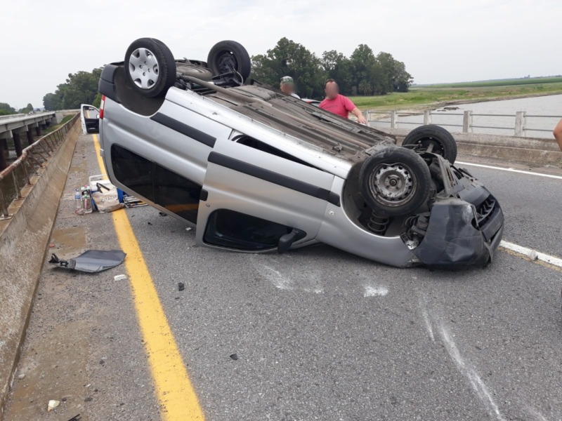 Una camioneta Citroën Berlingo volcó en el puente de Guerrero km 167.