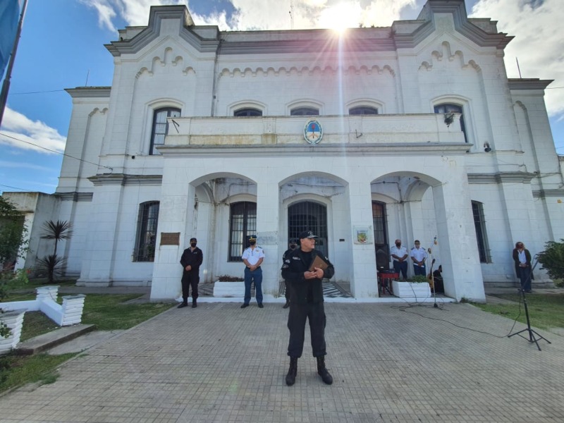 El Señor Jefe de Complejo Penitenciario Zona Este, Pascual Lettieri, presidió la ceremonia en el 145 Aniversario de la Unidad Nro. 6, de la ciudad Dolores, acompañado por el Director a cargo Marcelo Banegas, los Subdirectores Federico Rojas y Emir Luco junto a los Jefes de Secciones, Oficiales, Suboficiales y Guardias.