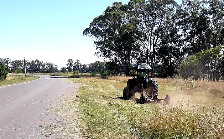 Personal de la Dirección de Espacios Verdes realiza cortes de pasto y mantenimiento del pasaje Carlos Gardel, similares tareas se continuarán hacia el sector de la Escuela Agraria, Canal 9 y la Picasa, terminado en ruta 63.