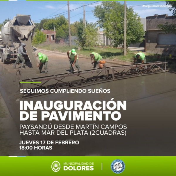 El jueves 17 de febrero, a las 18.00 horas, el Intendente Camilo Etchevarren, inaugurará dos cuadras de pavimento en calle Paysandú entre Martín Campos y Mar del Plata.