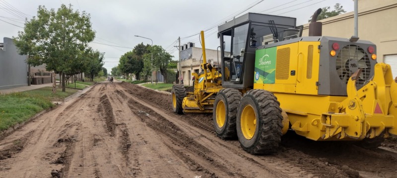 Con máquinas de la Secretaría de Obras Públicas se realizan mejoras en calle Monseñor De Andrea entre Sarmiento y Aristóbulo del Valle.