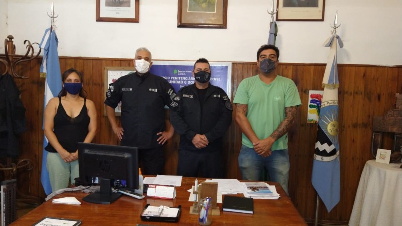 El Director de la Unidad, Emilio Lupo y el Subdirector Asistencia y Tratamiento, Marcelo Banegas mantuvieron la reunión junto a los profesionales de la ONG, la licenciada en Psicología Vanesa Moreno y el licenciado en Psicología Especialista en Psicología Forense Roberto Battaglia, quienes han sido desde el principio los artífices de llevar adelante el Proyecto, como una tarea tratamental avalada por la Dirección de Asistencia y Tratamiento del Servicio Penitenciario Bonaerense.