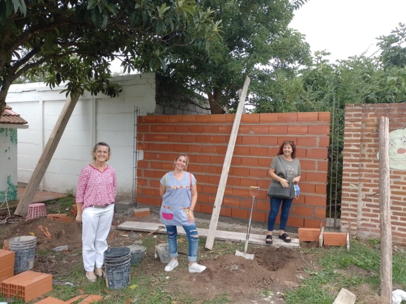 La Secretaria de Educación María Esther Larregle, la Presidente del Consejo Escolar Laura Clavero y la Directora del Jardín Nº 906 Marina Mateo, recorrieron los trabajos que se llevan a cabo en la institución.