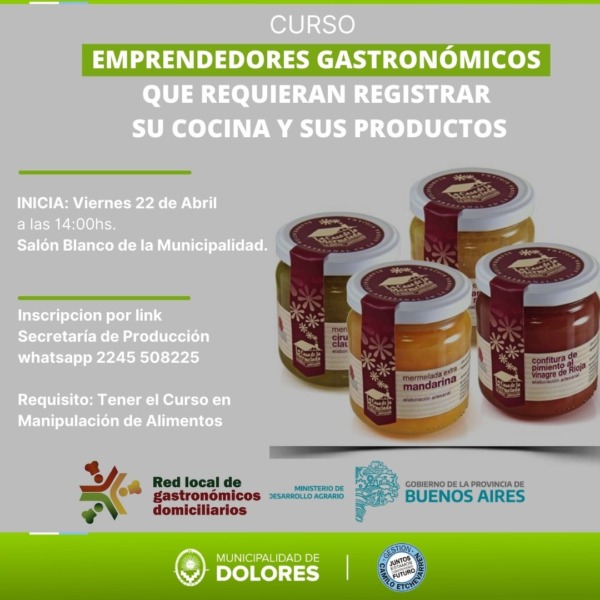 Desde la Secretaría de Promoción y Desarrollo Productivo se informa que se realizará el curso de PUPAAS (Pequeñas Unidades Productoras de Alimentos Artesanales), destinados a emprendedores gastronómicos domiciliarios que se encuentren fabricando productos alimenticios y deseen registrar el lugar de elaboración.