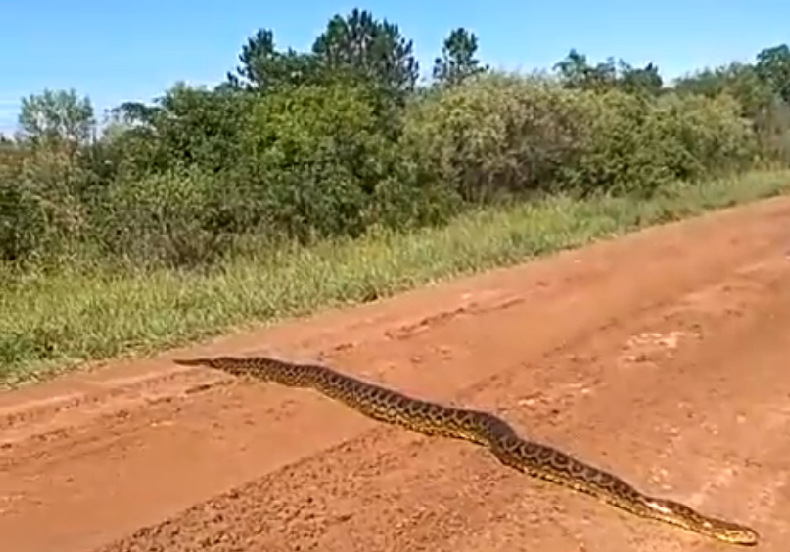 Un hombre que es ingeniero agrónomo y productor agropecuario de la provincia de Corrientes, filmó a una anaconda amarilla en un camino rural de los Esteros de Iberá. Se la encontró mientras andaba con su camioneta, y decidió frenar y grabarla para subirlo a sus redes.