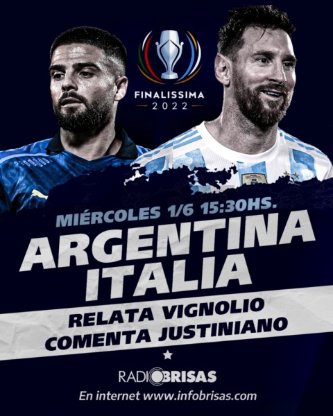 Miércoles 1 de junio, desde las 15.30 horas por Radio Brisas, Argentina – Italia. Relata Eduardo Vignolio, comenta Justiniano.