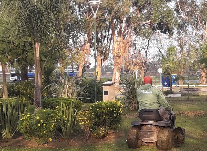 Personal de Espacios Verdes realiza cortes de pasto en las Plazas Yrigoyen, Sarmiento, Lara, Independencia, Acha y Stea. Las tareas de mantenimiento en espacios públicos se efectúan en el marco del Programa Dolores Ciudad Verde que lleva adelante el Intendente Camilo Etchevarren.