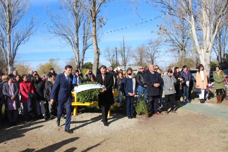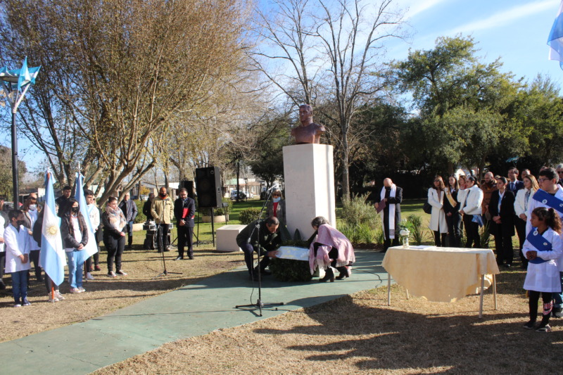 En el inicio el Intendente Camilo Etchevarren y la Jefe de Gabinete María Susana Andera, colocaron una palma en el monumento del Gral. Manuel Belgrano. Lo mismo hicieron los integrantes del Instituto Belgraniano