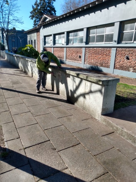 Personal de la Secretaría de Obras Públicas, está realizando la reparación de todo el muro perimetral del Hospital San Roque. Al finalizar esos trabajos, se pintará.