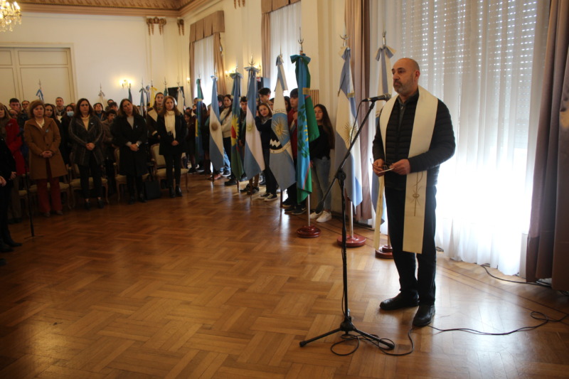 Posteriormente se entonaron las estrofas del Himno Nacional Argentino. El Padre Alejandro Mengucci, Cura Párroco de Nuestra Señora de los Dolores, ofreció su mensaje y bendición.