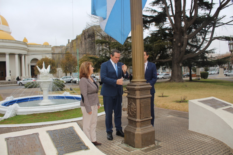 En la Plaza Castelli, las autoridades izaron la Bandera Nacional, de la Provincia y la Dolorense.