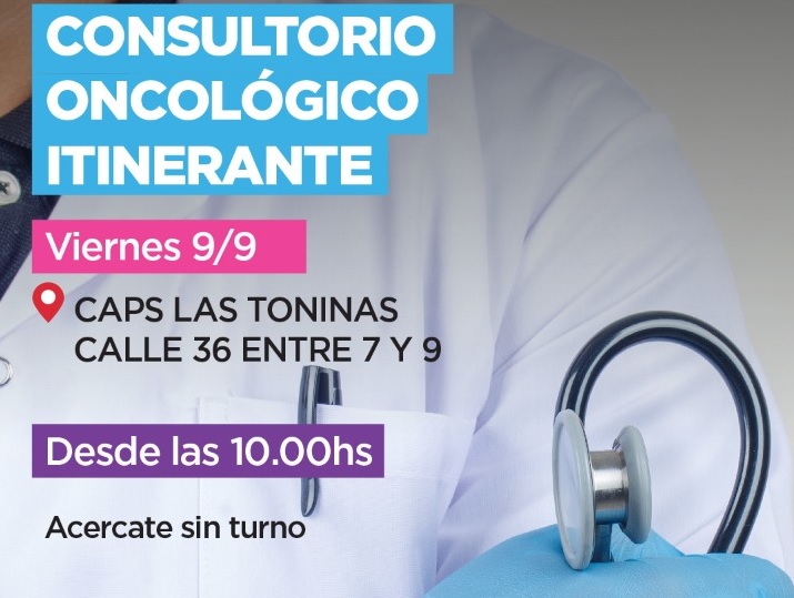 El Consultorio Oncológico Itinerante estará atendiendo en Las Toninas. El servicio se prestará el próximo viernes 9 de septiembre, desde las 10.00, en el Centro de Atención Primaria de la Salud (CAPS), de calle 36 entre 7 y 9.