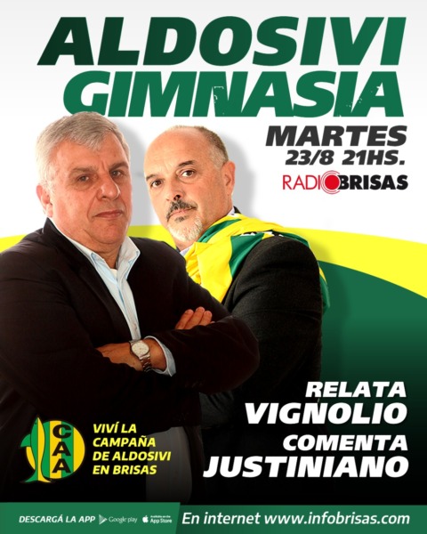 Martes 24 de agosto, desde las 21.00 horas, por Radio Brisas Gimnasia – Aldosivi. Relata Eduardo Vignolio, comenta Justiniano.