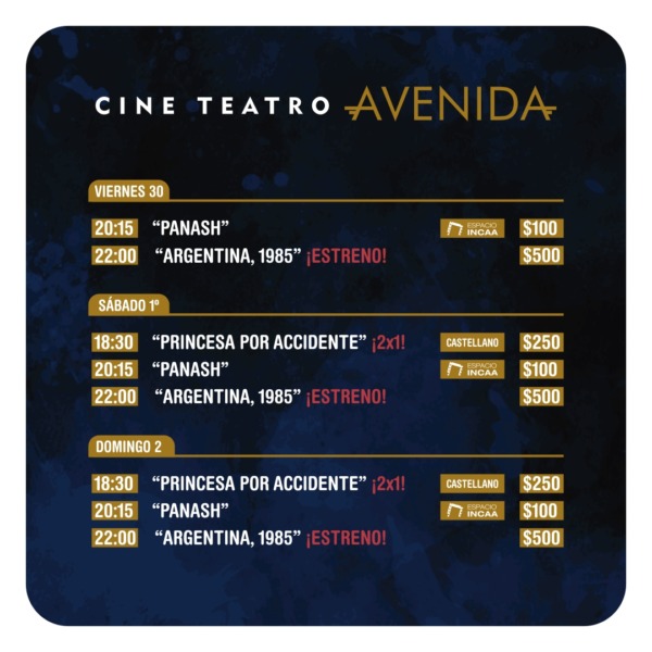 Este viernes a las 22hs. llega a la pantalla grande de Castelli: “Argentina 1985” – Inspirada en la historia real de Julio Strassera, Luis Moreno Ocampo y su joven equipo jurídico que se atrevieron a acusar, contra viento y marea, a contrarreloj y bajo constante amenaza, a la más sangrienta dictadura militar argentina. Una batalla de David contra Goliat, con los héroes menos esperados. Entradas a $500 con funciones viernes, sábado y domingo a las 22:00hs.