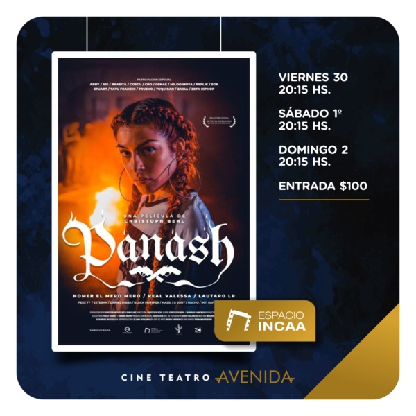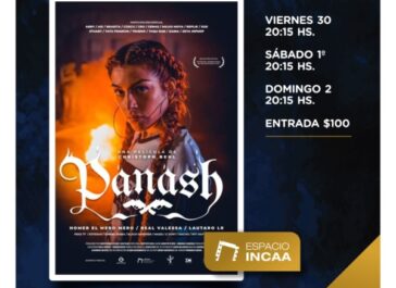 Dentro del Espacio INCAA llega “Panash”: En un futuro cercano y distópico Buenos Aires está en llamas, convulsionada por un estado de sitio que parece no tener fin. Pero en los márgenes de la ciudad hay lugar para una historia de amor. Entradas a $100 con funciones los días viernes, sábado y domingo a las 20:15hs.