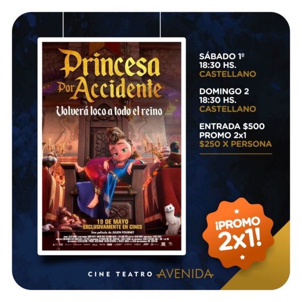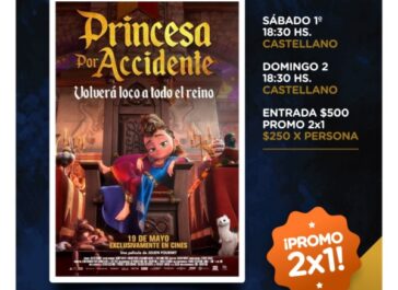 Además, continúa la proyección de “Princesa por Accidente” – Pil es una pequeña huérfana que vive en la calle, en la ciudad medieval de Roc-en-Brume. Junto a sus tres comadrejas amaestradas, Pil sobrevive robando comida en el castillo del siniestro rey Tristain, que ha usurpado el trono. El film tendrá funciones los días sábado y domingo a las 18:30hs, con entradas en promo a 2×1 a $500.
