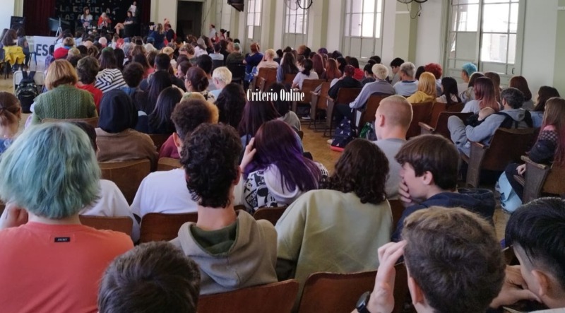 Nora Cortiñas se dirigió a los alumnos recordando su lucha de más de 40 años, que aún continúa. Hubo intercambio de preguntas y un instante para la emoción al repasar los momentos en los que se enteró de la desaparición de su hijo Gustavo.