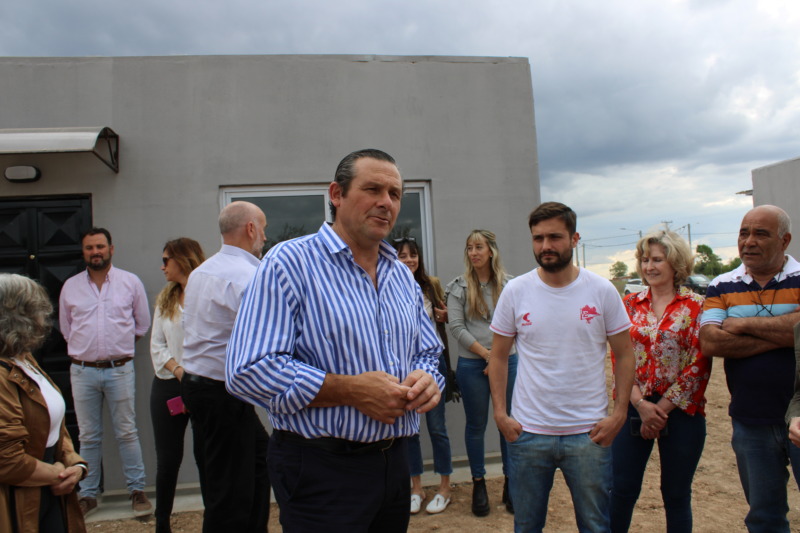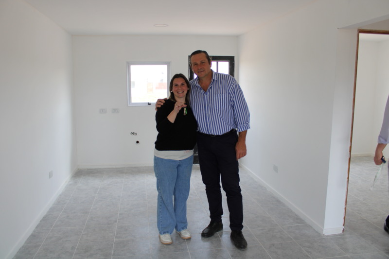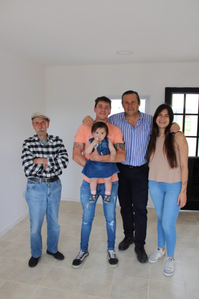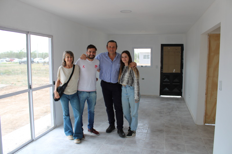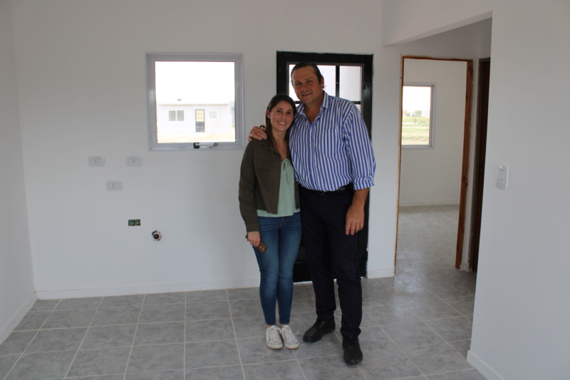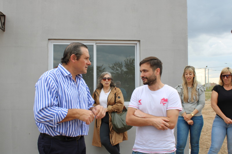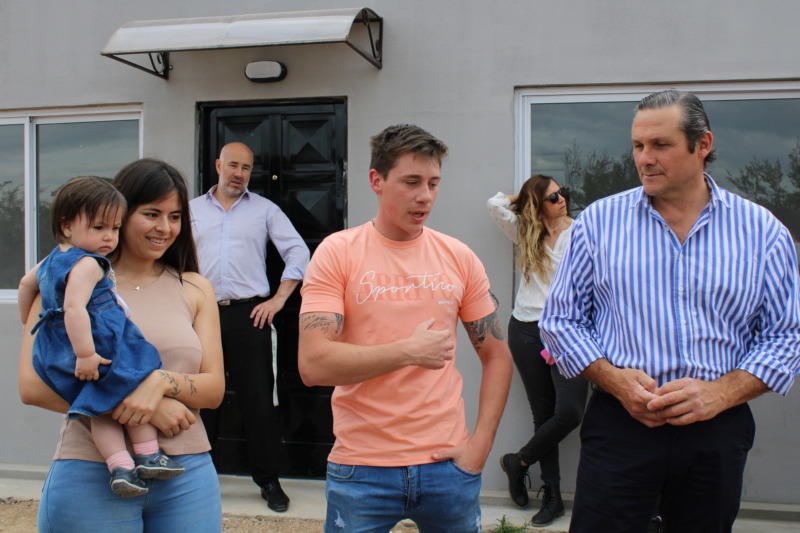 El Intendente Camilo Etchevarren, entregó cinco viviendas en el barrio René Favaloro. “En este sector de la ciudad vamos a construir 260 casas, ya se entregaron varias y hay 30 que están muy avanzadas”, dijo el Jefe Comunal, que agregó “queremos agradecer la confianza y el acompañamiento de los vecinos. A pesar del desastre económico que tiene el país, pudimos mantener el precio que rondó el millón cien mil pesos, que en la actualidad deben estar cerca de los 4 millones”.