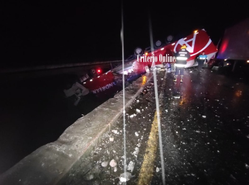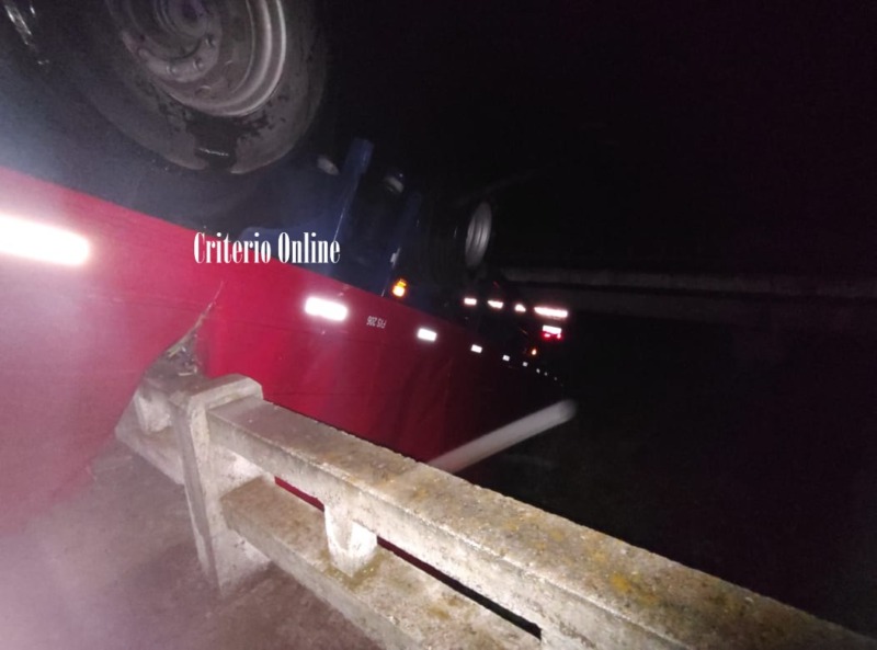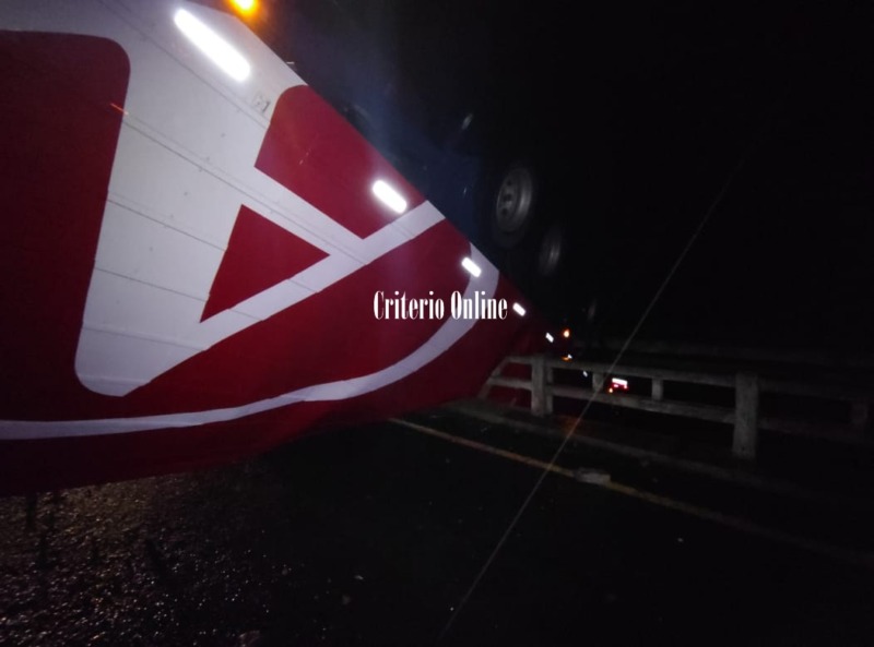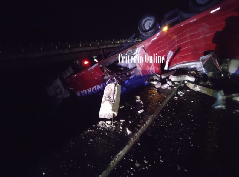 Un camión de la empresa Andreani despistó y quedó colgando sobre un puente en la Autovía 2, a la altura del km 260. Fue una desgracia con suerte ya que el chofer del vehículo habría sufrido algunas lesiones que no serían de gravedad.