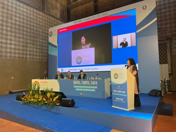 Vizzotti participa en Roma del Global Mental Health Summit (Cumbre Mundial de Salud Mental), con ministras y ministros de Salud de todo el mundo que intervienen en las deliberaciones que comenzaron ayer y continúan en la jornada de hoy.