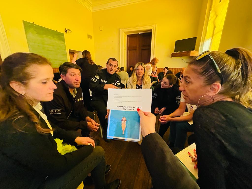 Bajo la metodología propia del taller, se dividió al personal en cuatro subgrupos, donde se analizaron distintas propuestas disparadoras, utilizando imágenes y frases como herramientas, para luego exponer la postura y la solución arribada en conjunto.
