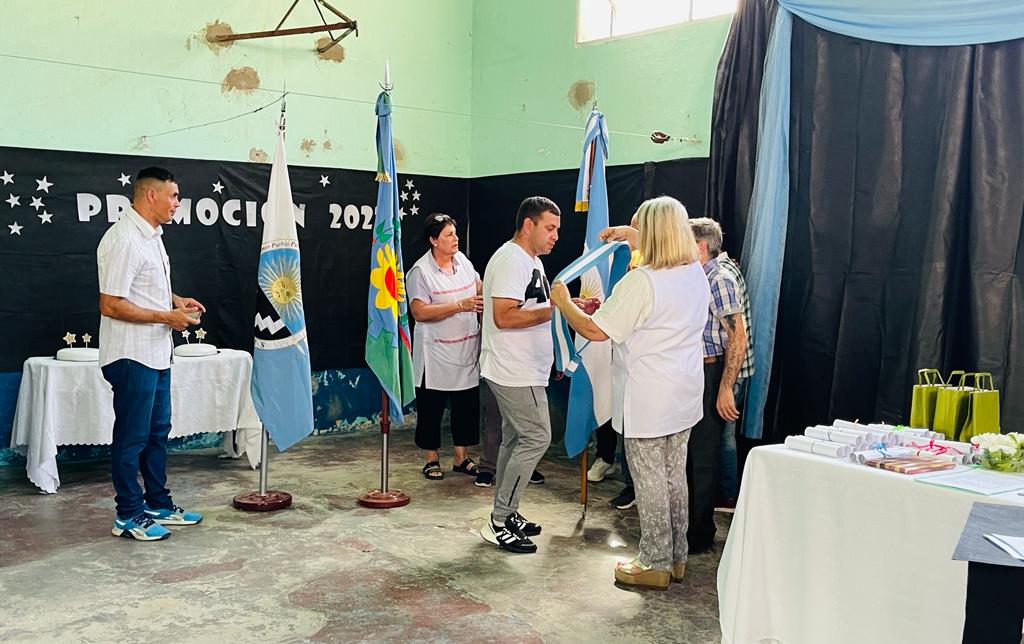 El director del CENS N° 452, Germán Castella, acompañado del docente Carlos Díaz, fueron quienes realizaron el cambio mientras que en la Escuela de Educación Primaria N° 701, lo hizo su Directora Laura Dufur.