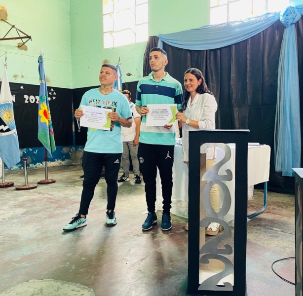 Luego, las autoridades penitenciarias entregaron un diploma de reconocimiento a los directivos y todo el equipo docente por el trabajo realizado, agradeciendo la labor que han enfrentado ante la adversidad siendo la clara muestra de la reinvención y la resiliencia, acompañando y fortaleciendo la Educación en Contexto de Encierro. Los diplomas estuvieron firmados por el Jefe del Servicio Penitenciario Bonaerense, Xavier Areses; la Directora de Educación y Formación Laboral del Ministerio de Justicia y DDHH de la Pcia. De Bs. As, Yamila Olariaga; la directora Gral. de Asistencia y Tratamiento del SPB, Norma Díaz y el subdirector Gral. de Educación del SPB, Marcos Blanes.