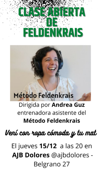 Este jueves 15/12 a las 20, se realizará en la Asociación Judicial Bonaerense, una jornada abierta de Método Feldenkrais dirigida por Andrea Guz, entrenadora asistente de Feldenkrais.