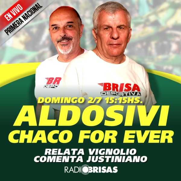 Domingo 2 de julio, desde las 15:15 horas, por Radio Brisas, Chaco For Ever – Aldosivi. Relata Eduardo Vignolio, comenta Justiniano.