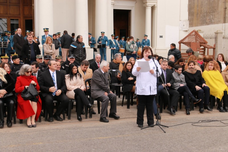 En nombre de la Comunidad Educativa de la Escuela primaria N°1, que desde hace 150 años participa activamente en la formación de alumnos y ciudadanos, quiero felicitar al pueblo dolorense e invitarlos a renovar nuestro compromiso con esta ciudad, para que juntos sigamos construyendo sobre el legado de nuestros antepasados y trabajemos para hacer de esta ciudad un lugar aún mejor, para las generaciones venideras. ¡Muchas Gracias!”.