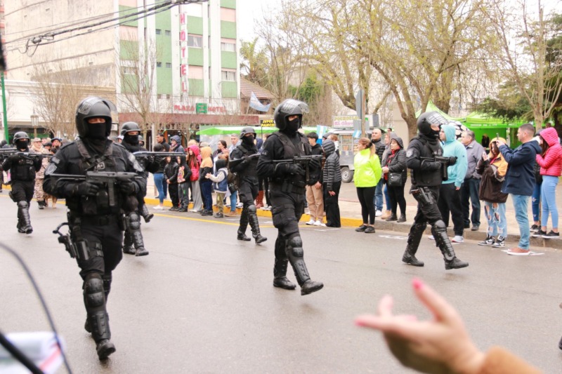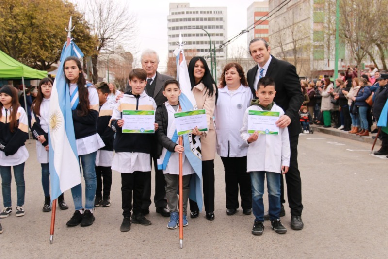 En la parte final se llevó a cabo el desfile de las instituciones educativas, el Intendente junto los integrantes del Gabinete hicieron entrega de los Diplomas a los nuevos Abanderados y Escoltas.