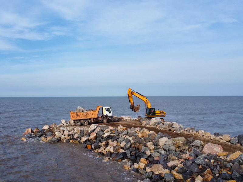 Una vez construidos los espigones, se retirará el pedraplén que se emplea para realizar los trabajos, que también incluyen la protección de la estación de bombeo cloacal ubicada a la altura de la calle 38.