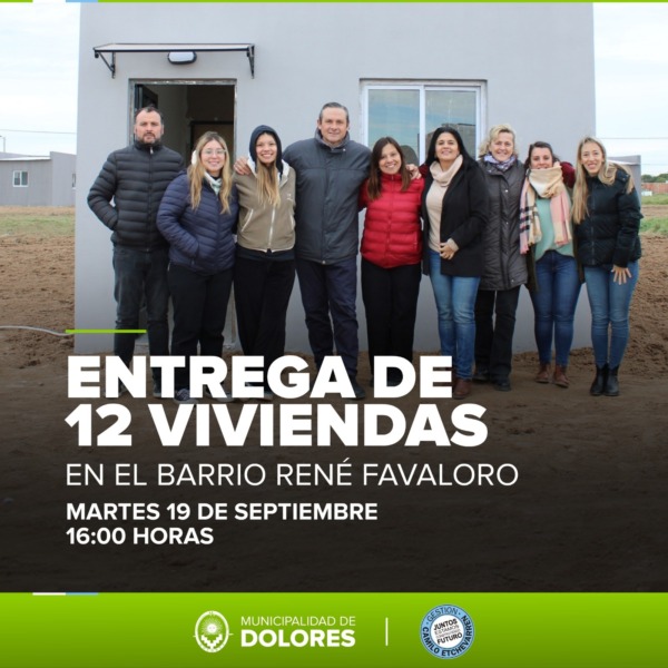 La Municipalidad de Dolores informa que el martes 19 de septiembre a las 16.00 horas, el Intendente Camilo Etchevarren, realizará la entrega de 12 viviendas en el barrio René Favaloro.