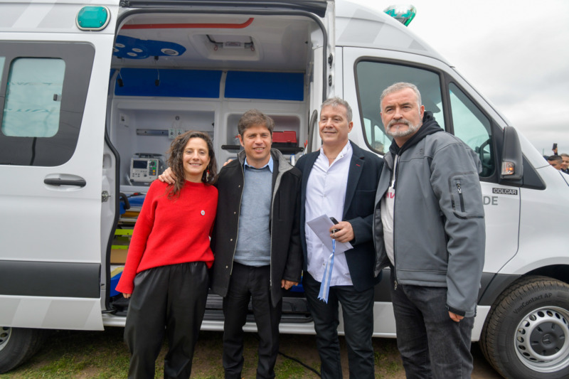 Durante la jornada, Kicillof encabezó también el acto de puesta en funcionamiento de dos ambulancias de alta complejidad destinadas a mejorar la gestión de emergencias en los municipios de Ramallo y Rojas, junto a la subsecretaria de Gestión de la Información, Educación Permanente y Fiscalización del Ministerio de Salud, Leticia Ceriani, y el dirigente de Rojas, Carlos Salinas. Además, las autoridades entregaron un respirador para el Hospital “José María Gomendio”.