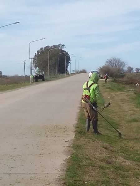 Personal de Espacios Verdes realiza cortes pasto en calle Argel, en el sector de gimnasios a cielo abierto, en el acceso al barrio García Cuerva, Paseo de la Guitarra, Parque Libres del Sur, zona de cabaña deTurismo y Bromatologia.