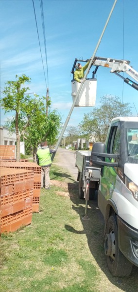 Personal del departamento de electricidad municipal, instaló luminarias LED en calle Callao entre Bulgaria e Italia y Junín entre Italia y Bulgaria.