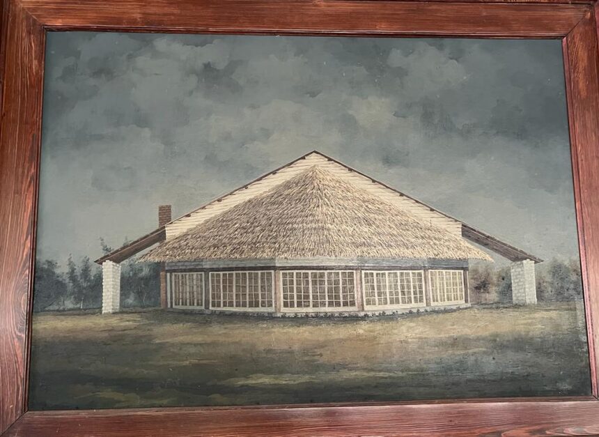 El cuadro es una pintura realizada por el artista plástico dolorense Nelo González Oronó, la imagen de Naytuel es de sus comienzos, hoy se conserva igual el salón, pero su techo es de tejas españolas.