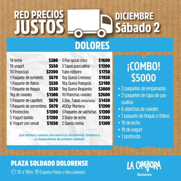 En esta oportunidad, Dolores contará con la presencia del camión de Pastas y Lácteos, que cuenta con productos de primera calidad a los mejores precios.