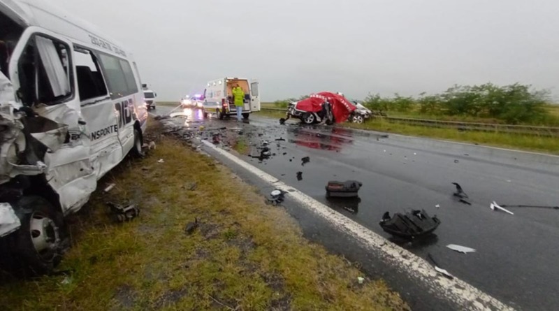 En un trágico accidente en la Ruta 226, kilómetro 367, durante el temporal, una combi que transportaba estudiantes chocó de frente con un auto. Dos personas oriundas de Olavarría que viajaban en el auto perdieron la vida.