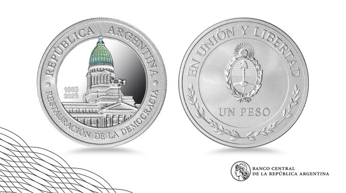 El Banco Nación lanzará una moneda conmemorativa del 40° de la democracia recuperada en Argentina: será de valor nominal de $1, con detalles especiales de diseño y vendrá en un estuche, aunque su costo recién se sabrá el lunes cuando se habilite su venta.