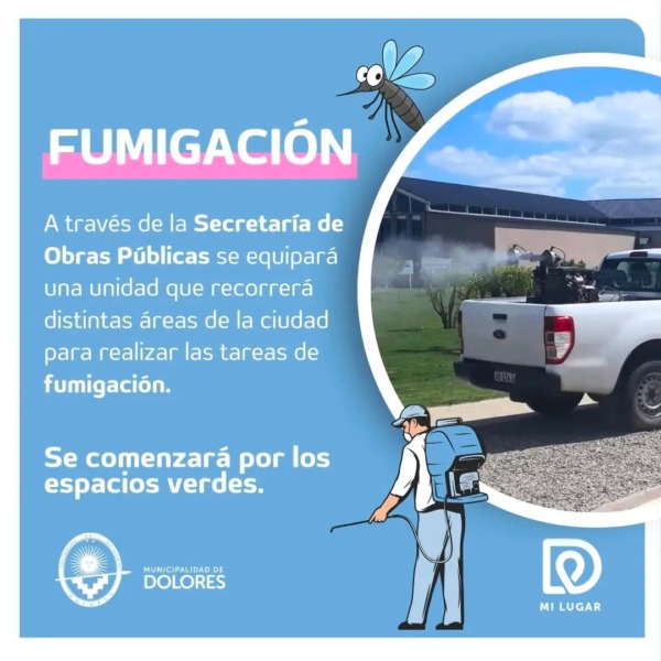 La Municipalidad de Dolores informa que en el transcurso del día se comenzará con la fumigación en espacios verdes.