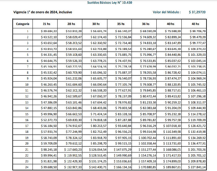 A su vez, la categoría más alta es la 24. Con 21 horas laborales en la semana, el salario mínimo asciende a $ 99.680,50.