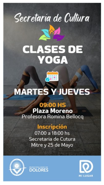 La Secretaria de Cultura de la Municipalidad de Dolores informa que comenzaron las clases de Yoga a cargo de la Profesora Romina Bellocq.