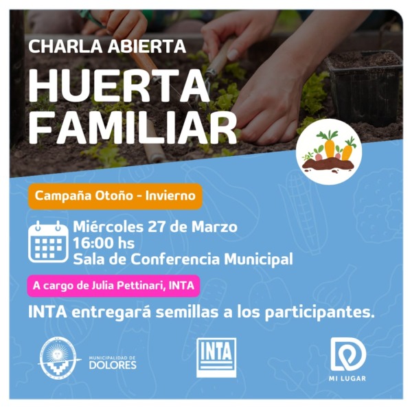 Además, Julia Pettinari técnica del INTA brindará una charla abierta a las 16hs en la Sala de Conferencias de la Municipalidad sobre huerta familiar para la campaña otoño/invierno, donde se entregarán semillas de estación.