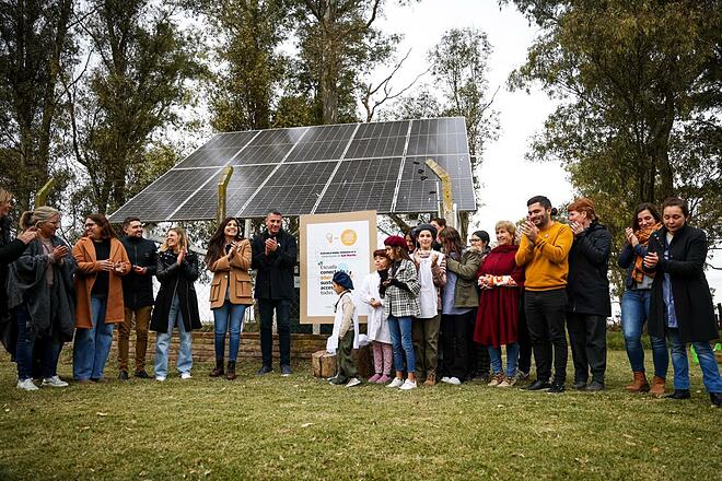 La ministra de Ambiente de la Provincia junto al intendente local, inauguraron el primero de los 7 paneles solares que se instalarán en escuelas rurales del distrito que no tenían conexión a la red eléctrica. Además, entregaron bicicletas para los alumnos, huerta, compostera, plantas nativas y árboles frutales en la Escuela Primaria Nº8 General José de San Martín.