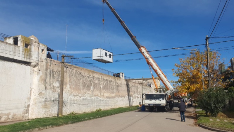 La Unidad 6 vivió una jornada fuera de lo común con la llegada de una grúa especial equipada con una extensa pluma. ¿El motivo? ingresar aulas moviles.